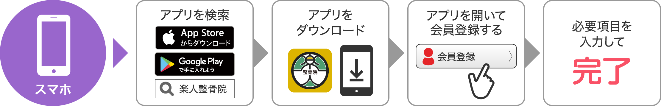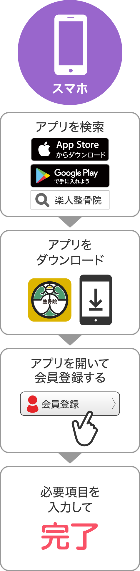 楽人の無料アプリを配信中です。ダウンロードして会員登録していただくと、アプリからの予約も行えます。